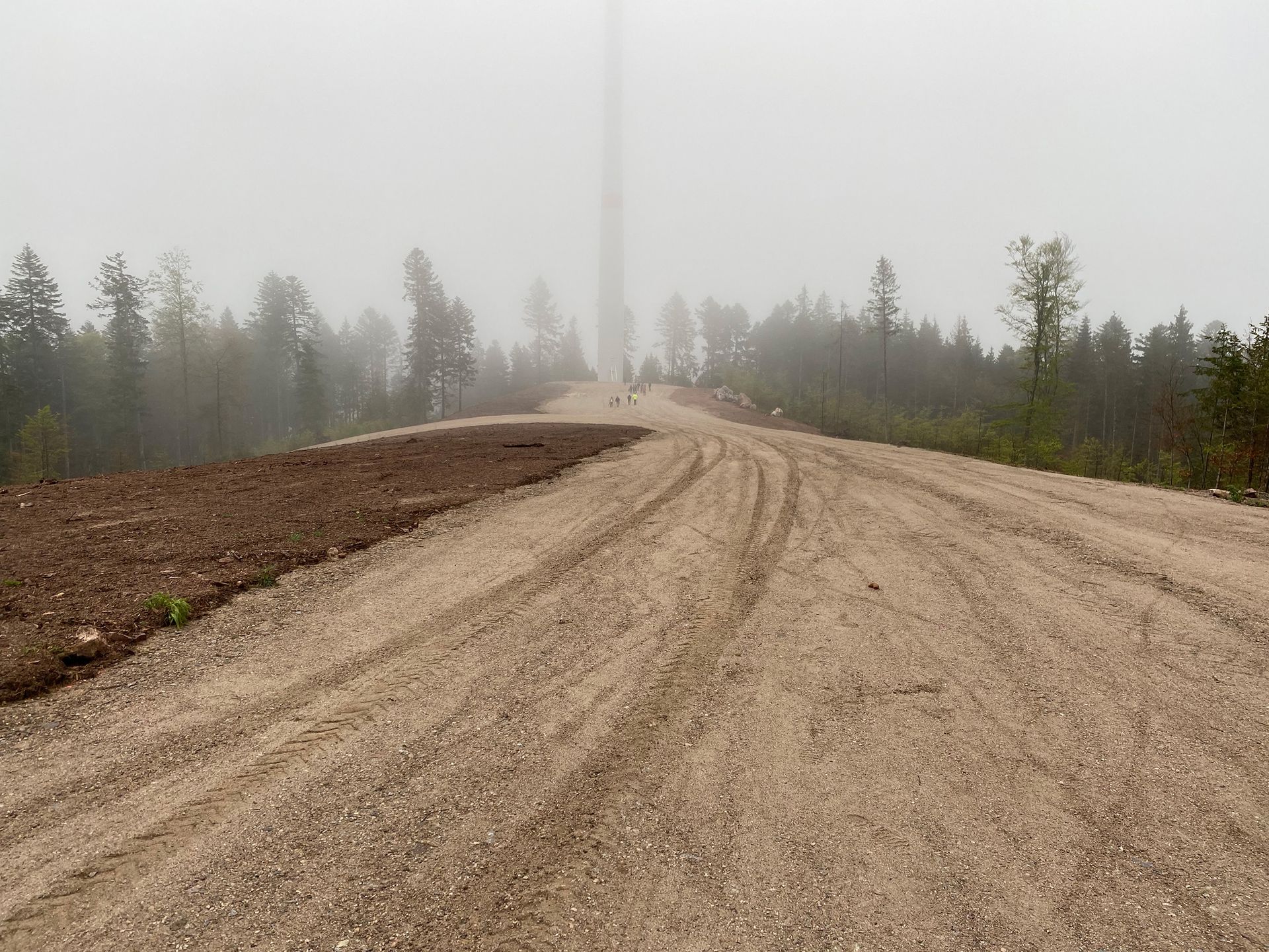 • pro Windrad 2-3 Fußballfelder Wald dauerhaft zerstört wird für Freifläche / Zufahrtswege.