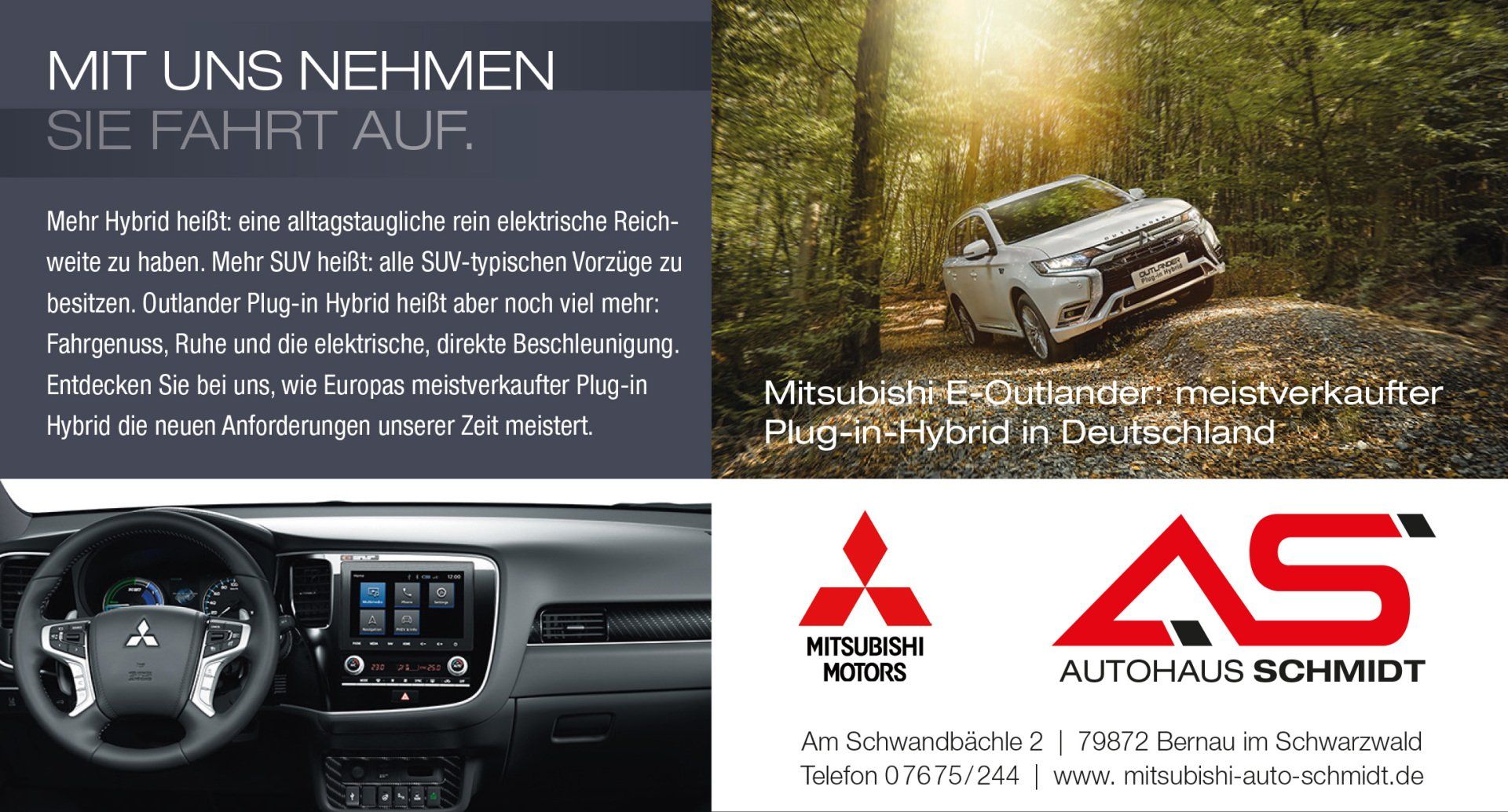 Der Vorteil: Wer überwiegend Kurzstrecken fährt, ist meist rein elektrisch unterwegs und trägt bei einem konsequenten Ladeverhalten zur Reinhaltung der Luft und einer deutlichen Verringerung der Geräuschemissionen bei. Gerade bei uns ist dies eine prima Sache, wo wir in einer Region leben, in der andere Urlaub machen und Erholung suchen. Nur bei längeren Fahrtstrecken wird der Verbrennungsmotor benötigt. Genau diese Sicherheit und Flexibilität macht die „Plug-in-Hybride“ derzeit so erfolgreich. Da immer mehr Strom regenerativ erzeugt wird, wirken sich elektrisch betriebene Fahrzeuge positiv auf die Ökobilanz aus. Zukünftig könnten die in Elektrofahrzeugen verbauten Batterien sogar als Stromspeicher für private Haushalte benutzt werden. Dies würde in Spitzenzeiten das Stromnetz entlasten und hätte einen ausgleichenden Effekt.